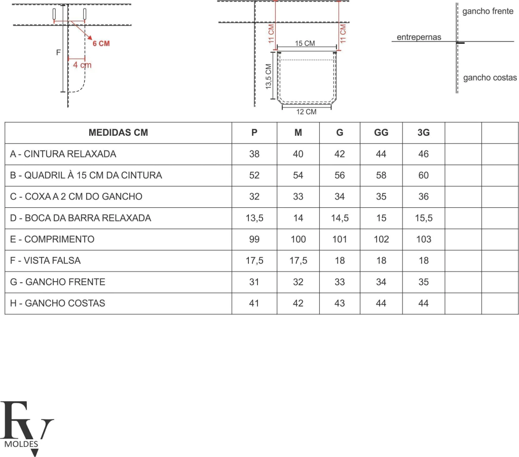 - Moldes graduados nos tamanhos: P, M, G, GG e XG.