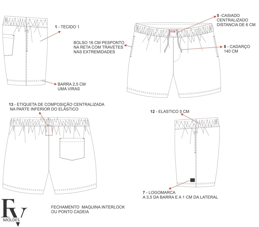 Se você busca um molde de alta qualidade para confeccionar bermudas masculinas em moletom, com excelente vestibilidade e um toque macio, a FV Moldes tem o que você precisa! Trabalhamos seguindo as normas técnicas da indústria têxtil para garantir a precisão e o encaixe perfeito em todos os tamanhos, do P ao XG.